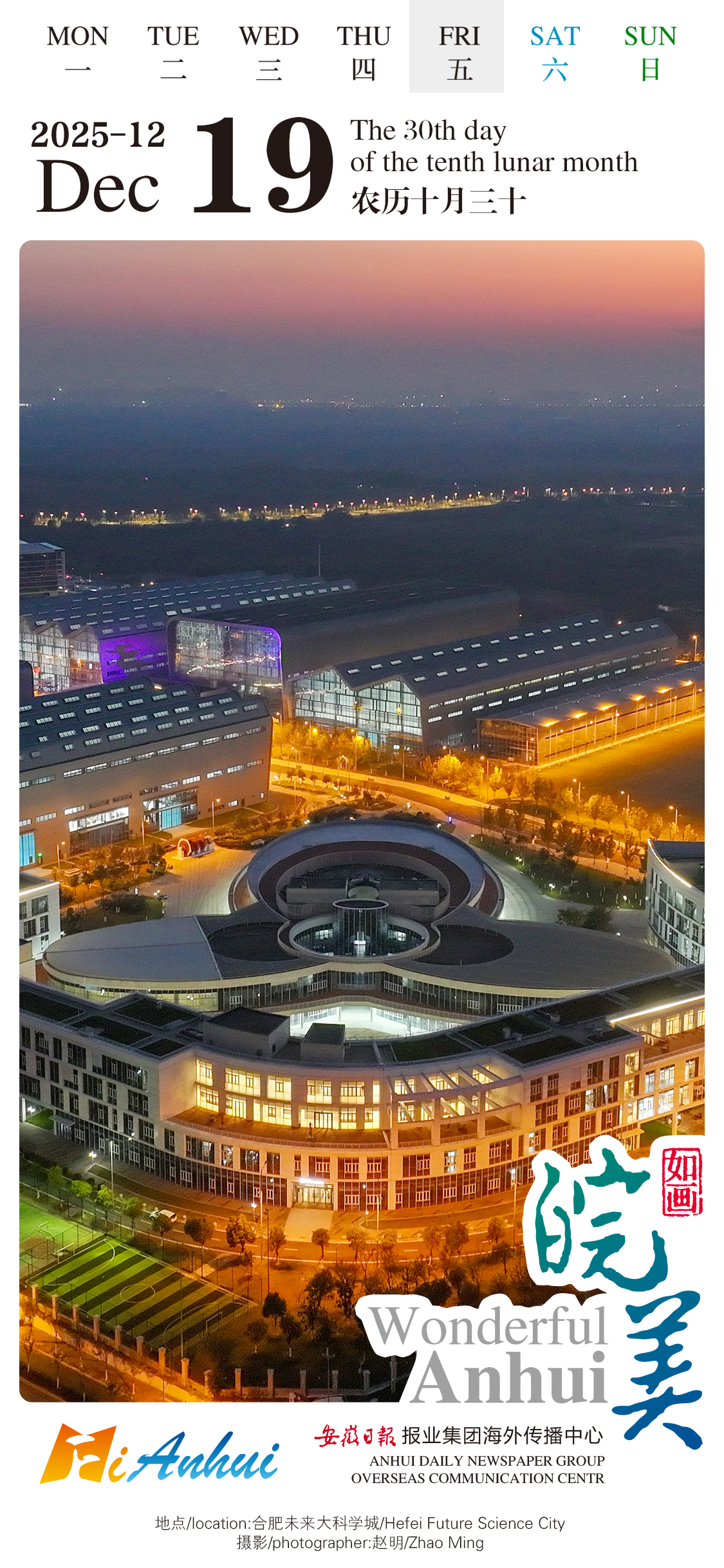 As for today’s "Wonderful Anhui" English calendar, let’s turn our attention to Hefei Future Large Science City where futuristic vibes meet robust scientific and technological innovation in Anhui.