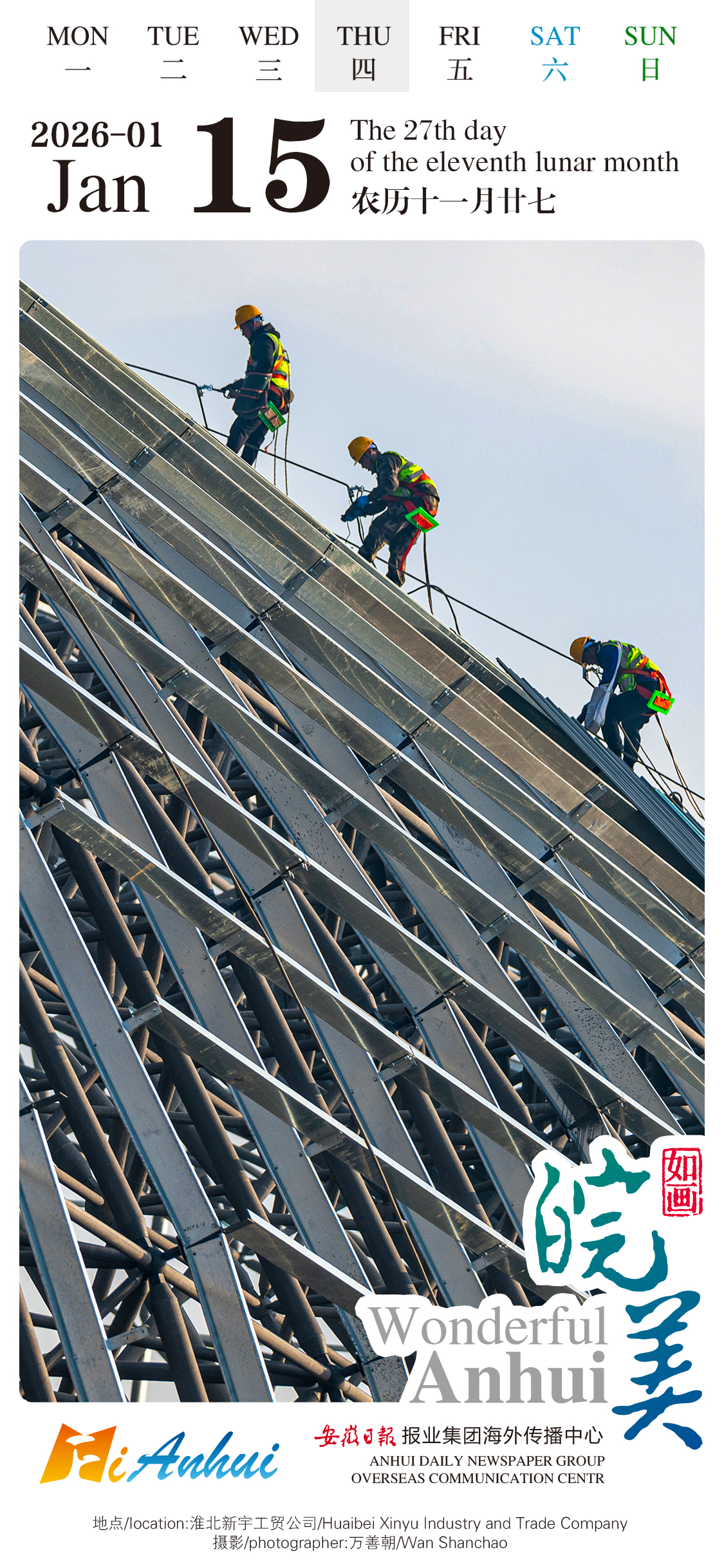 As for today’s "Wonderful Anhui" English calendar, let’s turn the attention to the craftsmen working in Huaibei Xinyu Industry and Trade Company whose dedication is driving the city's continuous improvement in Anhui.