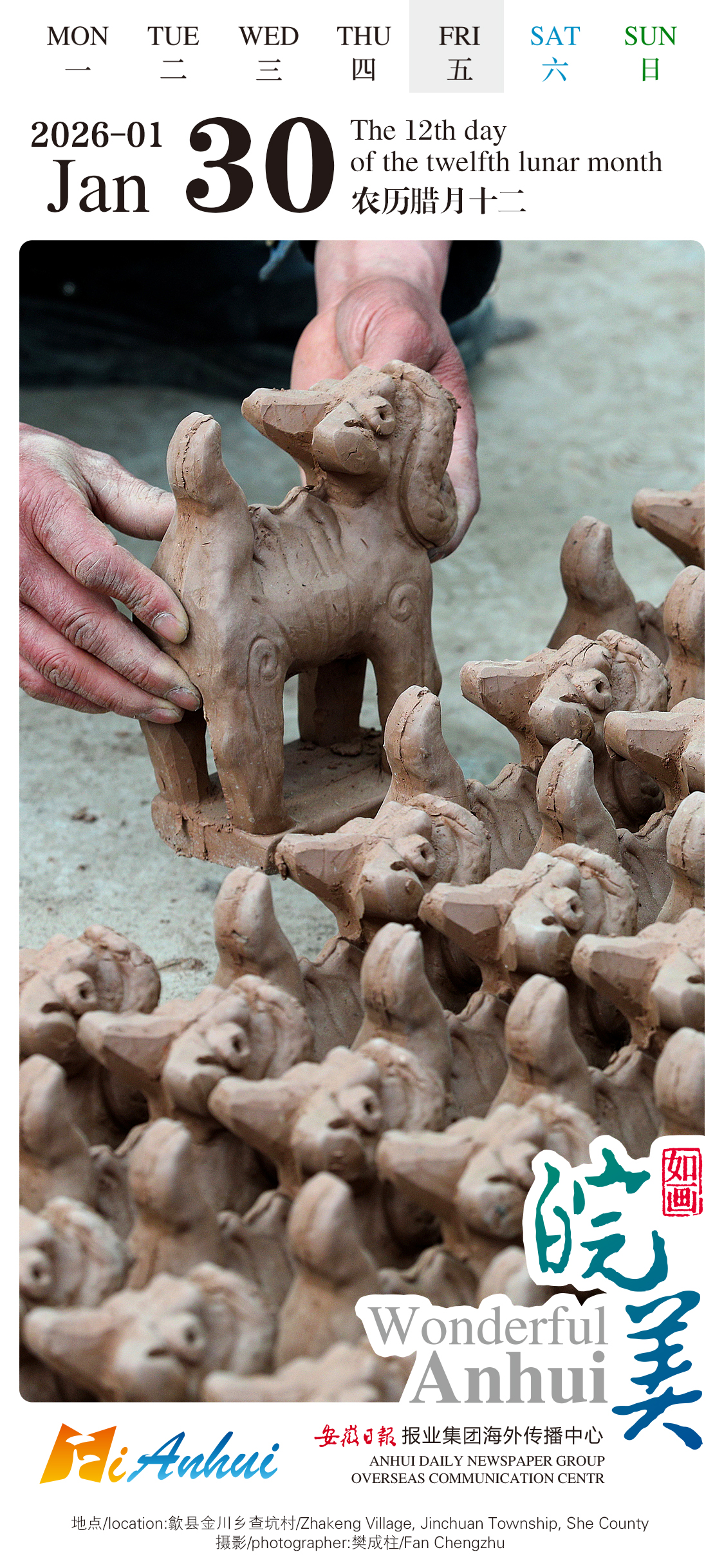 Join the "Wonderful Anhui" English calendar and see adorable handcrafted clay figurines carrying the craftsmanship of local villagers and stories of rural heritage here in Jinchuan Township, Shexian County, Anhui.