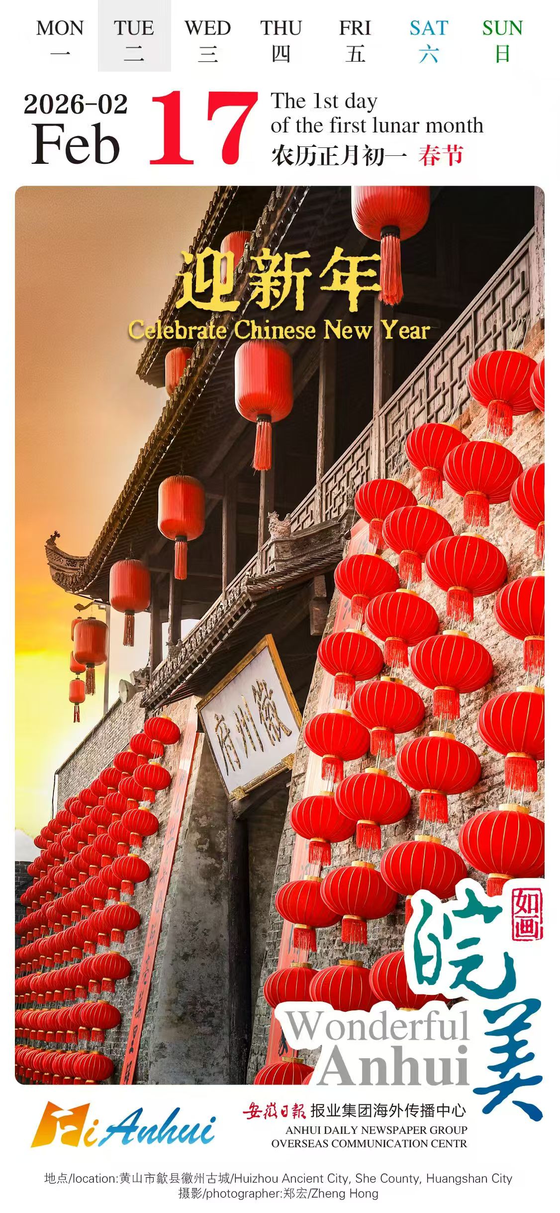 Today ushers in the first day of the Year of the Horse. It is a time to reunite with family, pay tribute to our ancestors, and share joyous feast. Follow the “Wonderful Anhui”calendar on a tour to Huizhou Ancient City in Shexian, Huangshan where ancient buildings and red lanterns wrap you in festive vibes of the Chinese New Year.